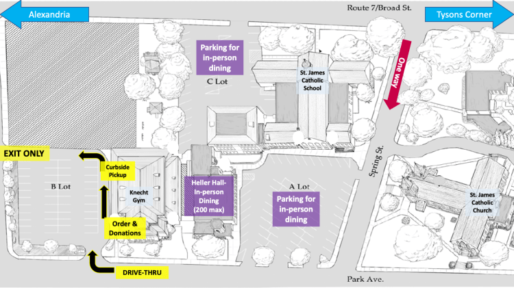 El drive-thru está diseñado para tener un contacto mínimo. El siguiente mapa muestra el flujo de tráfico anticipado de drive-thru.